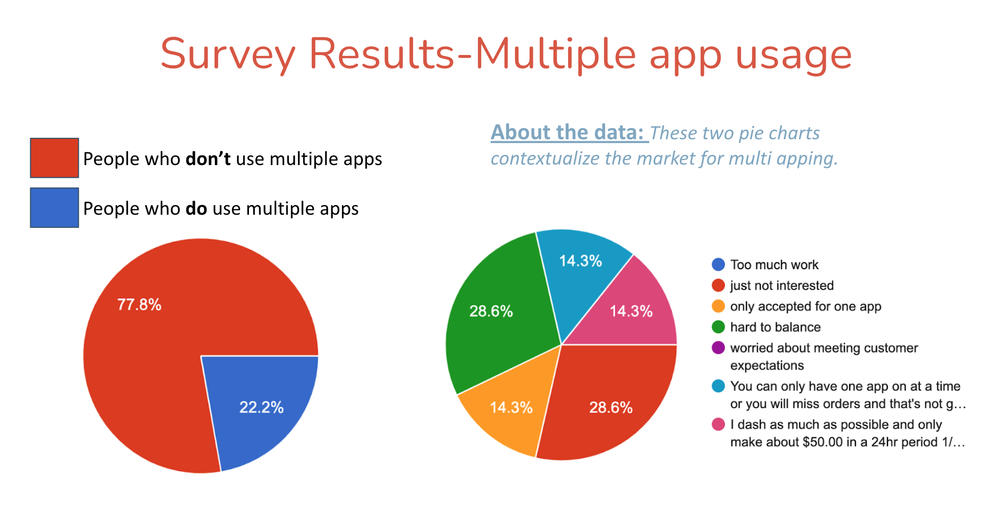 • Uncover existing issues with delivery app drivers utilizing multiple gig apps simultaneously.