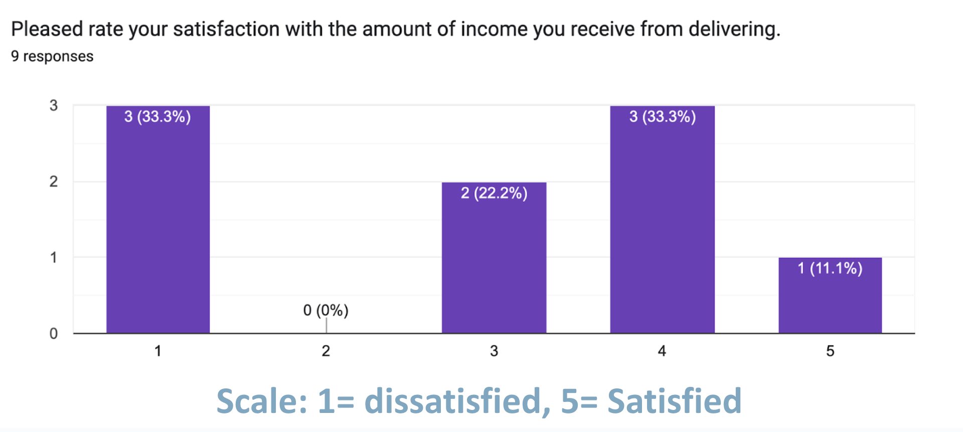 A study conducted on the experience of all delivery drivers noted employees of the meal delivery services are least satisfied with their pay.